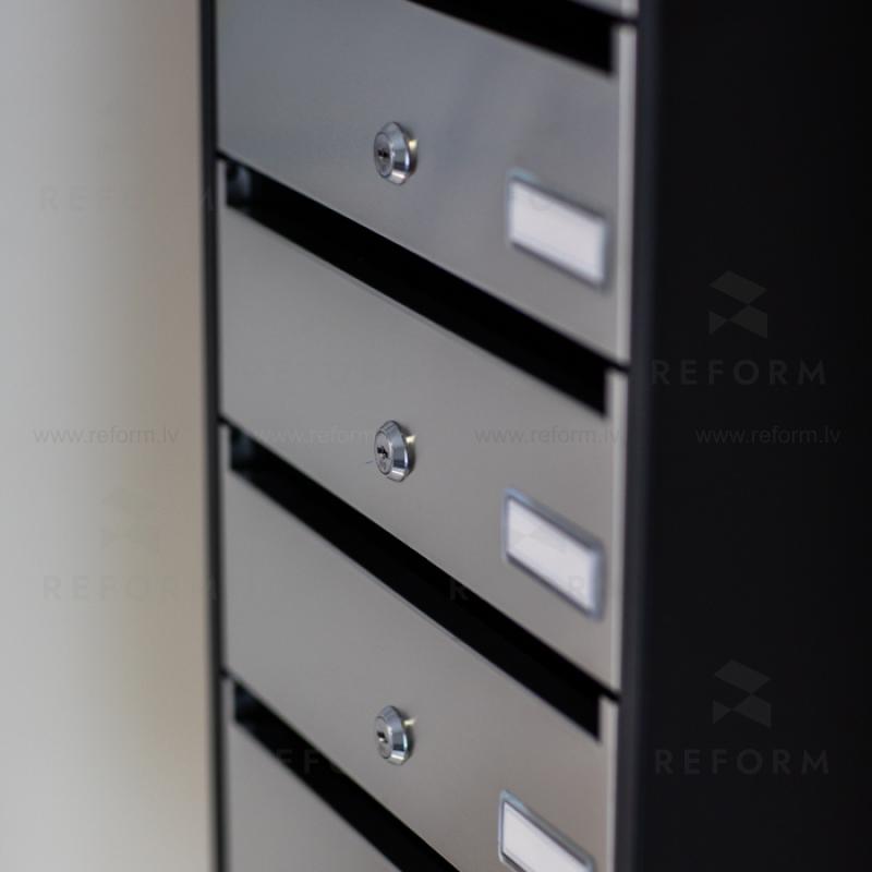 PD937 Vertical indoor postbox, 7 mailboxes, black / stainless steel